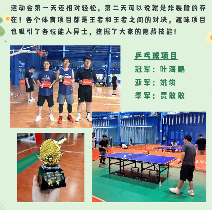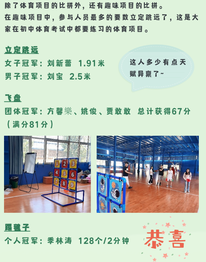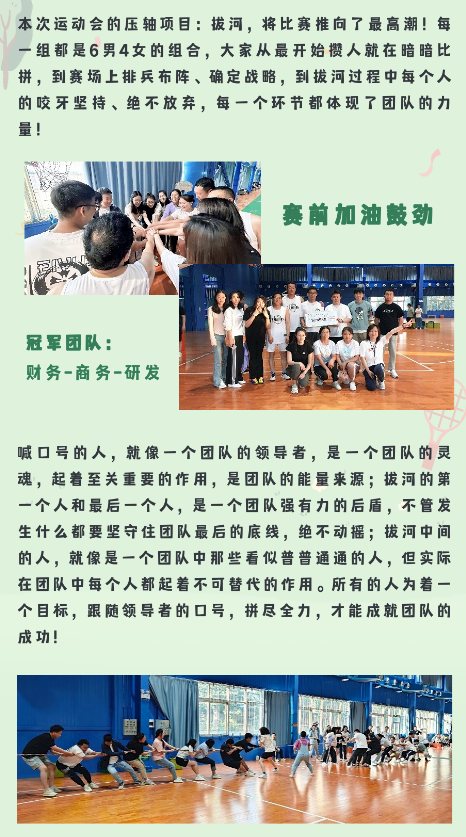 相信通過(guò)這次運(yùn)動(dòng)會(huì),大家在合作和對(duì)抗中都對(duì)其他人有了新的認(rèn)知,在未來(lái)的工作和生活中,能夠更加融洽更加默契!